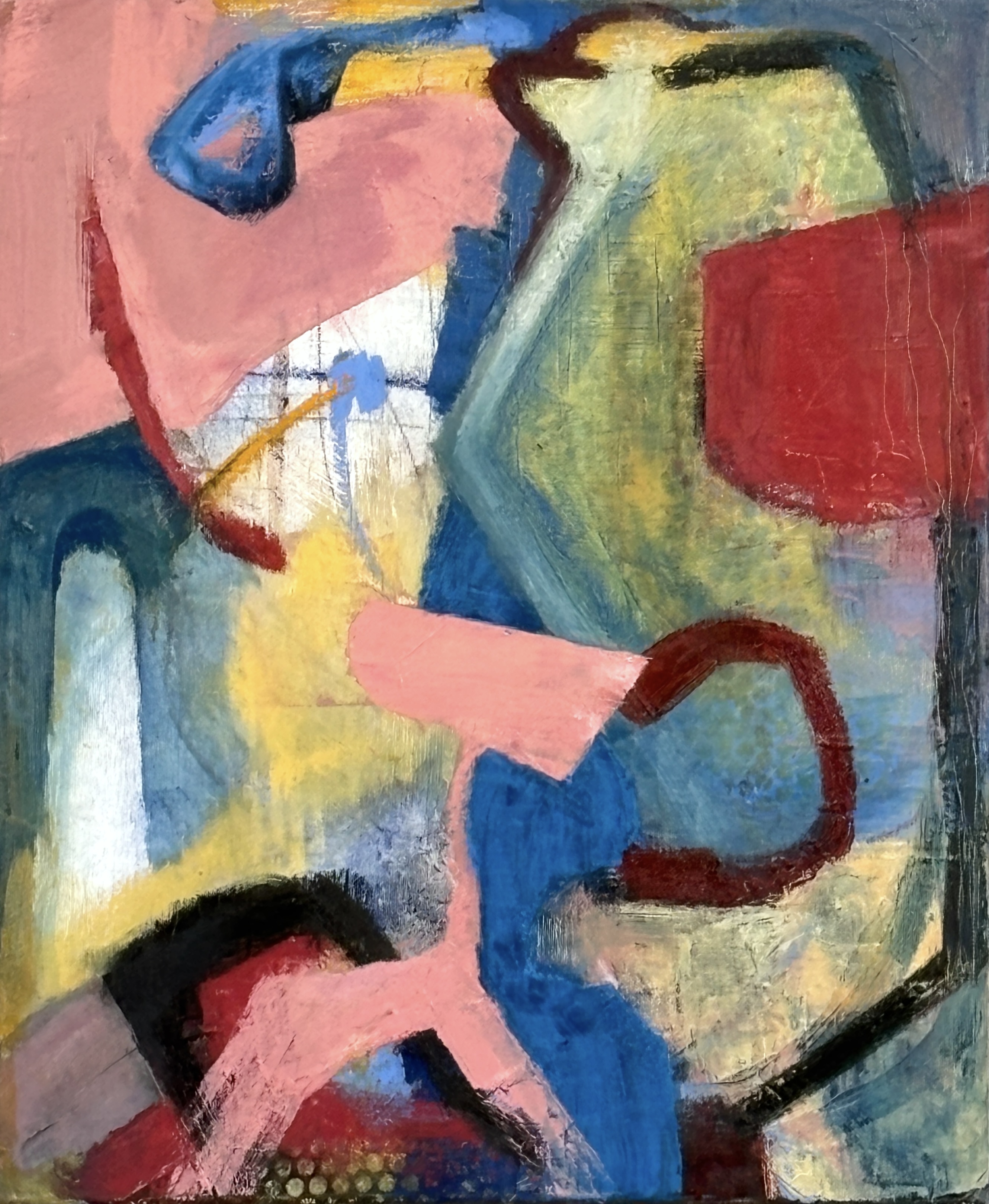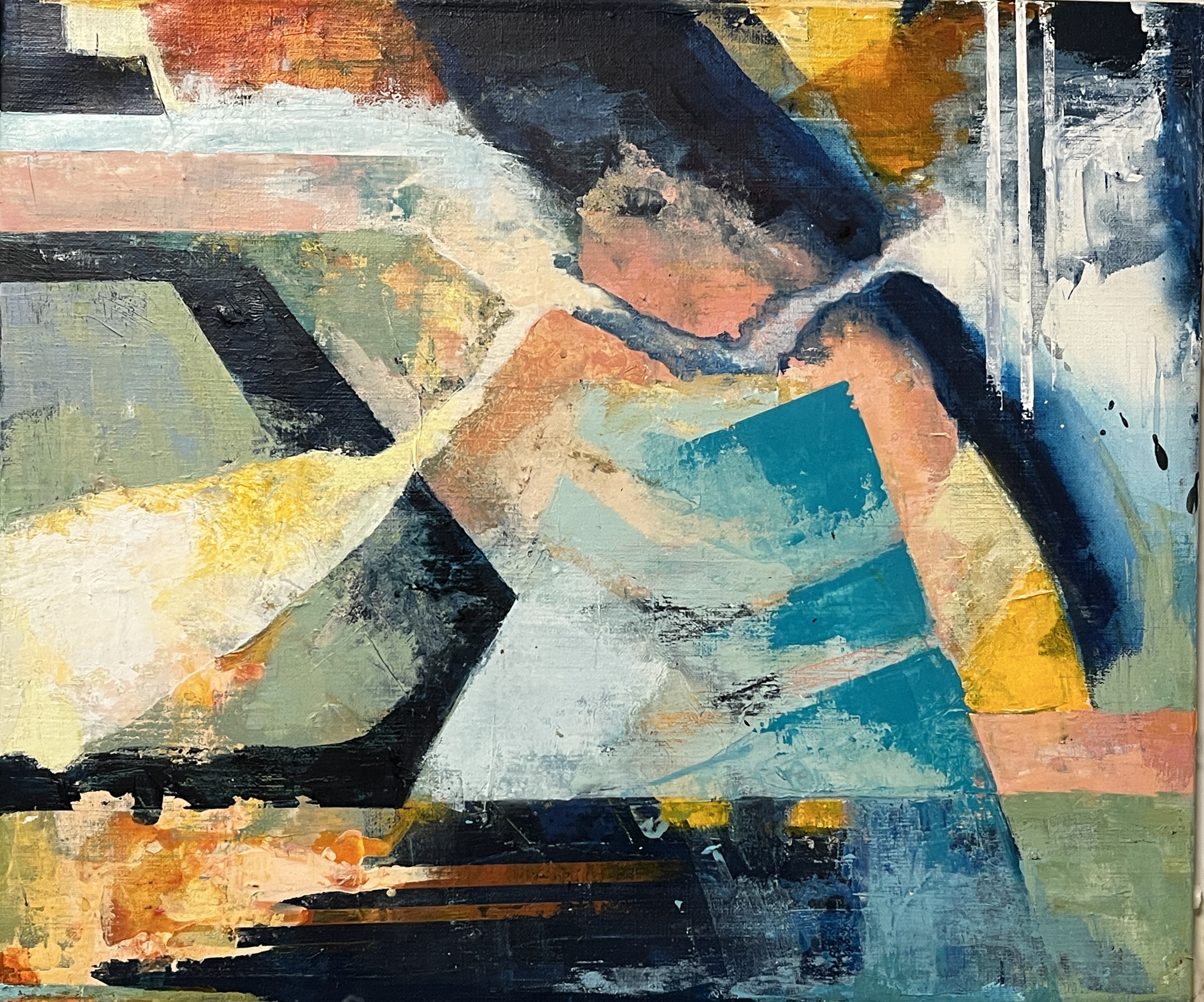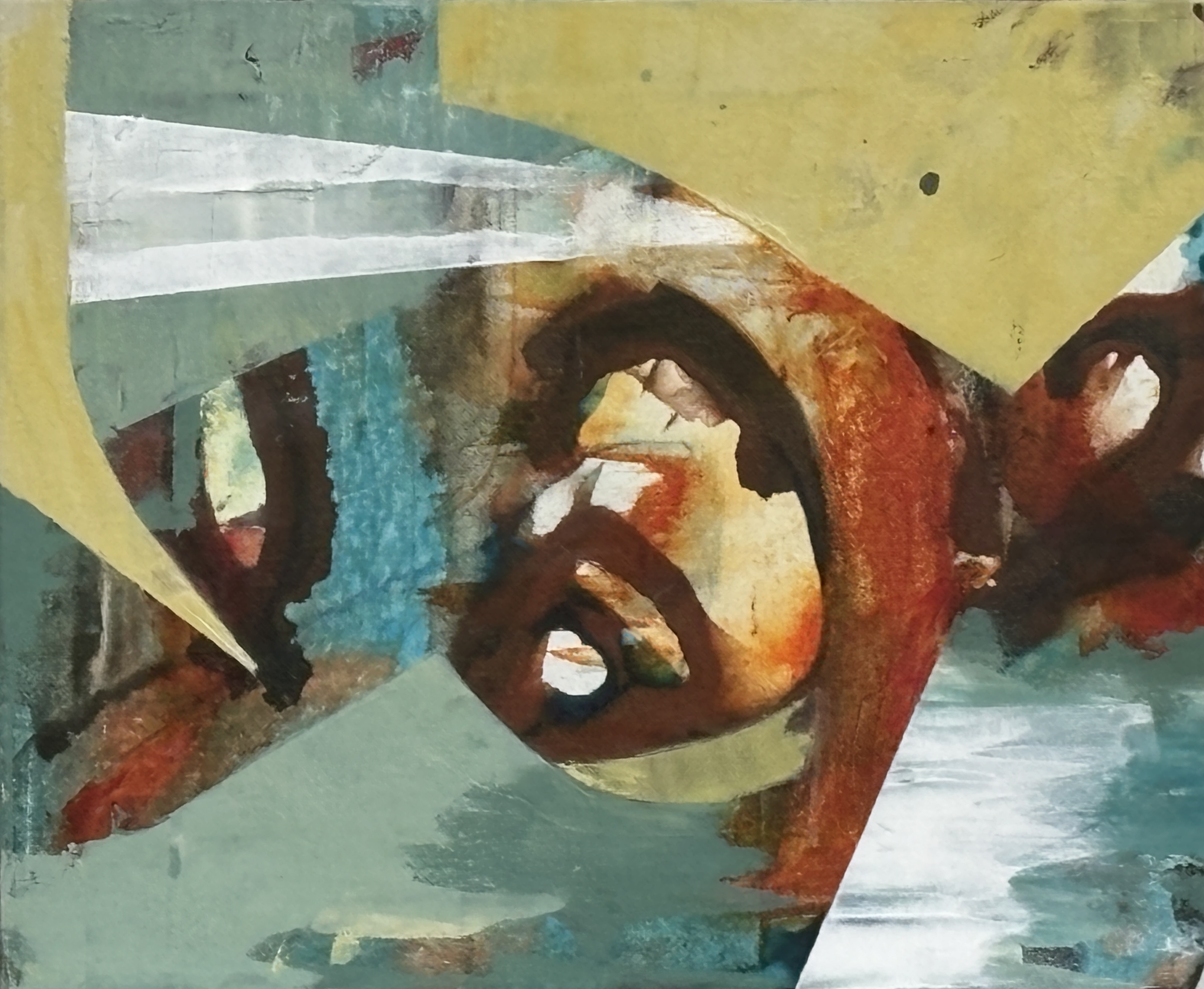 I andra är utgångspunkten i den fragmenterade världen vi har, alla olika perspektiv, längtan efter en helhet när det mesta känns/är trasigt. Dessa är i olja och har ett annat uttryck med tydliga tyngre färgfält.
